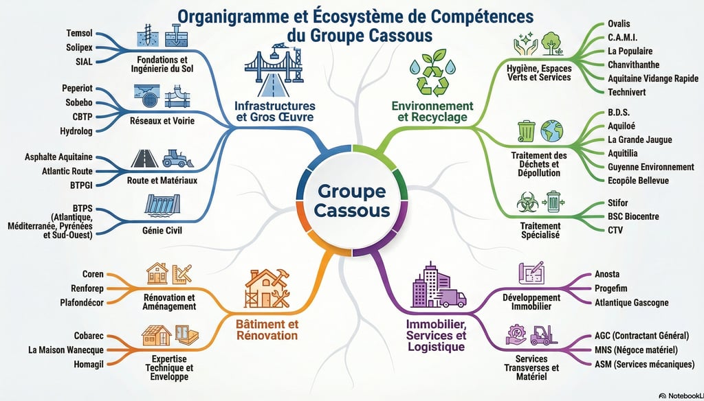 Le Groupe Cassous est un groupe familial et indépendant qui porte le nom de son fondateur et président Henri Cassous. L'entreprise Le cœur de métier du groupe s’est formé autour des activités du Bâtiment et des Travaux Publics et représente 82% de son chiffre d’affaires. Le groupe s’est diversifié plus tard dans les métiers de l’Immobilier (11%) et de l’Environnement (7%). La forme de l'entreprise est une SAS (Société par Actions Simplifiée).